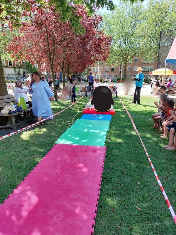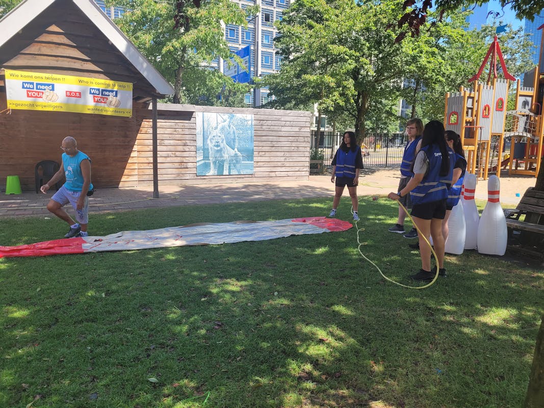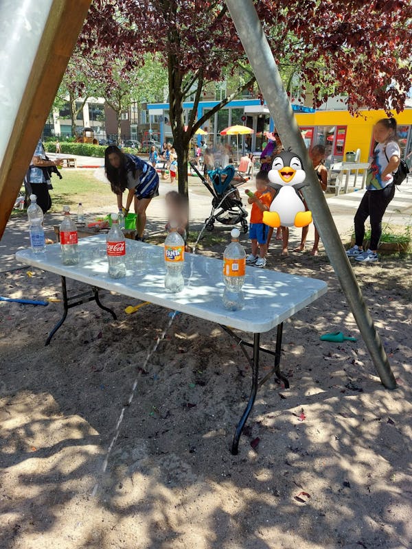Daar werd het uitbundig gevierd samen met studenten van het Living Lab. Kinderen konden als levende bowlingbal over de waterglijbaan glijden, flesjes om proberen te schieten, ouderwets waterballonen gooien of elkaar proberen te raken met waterballonnen.