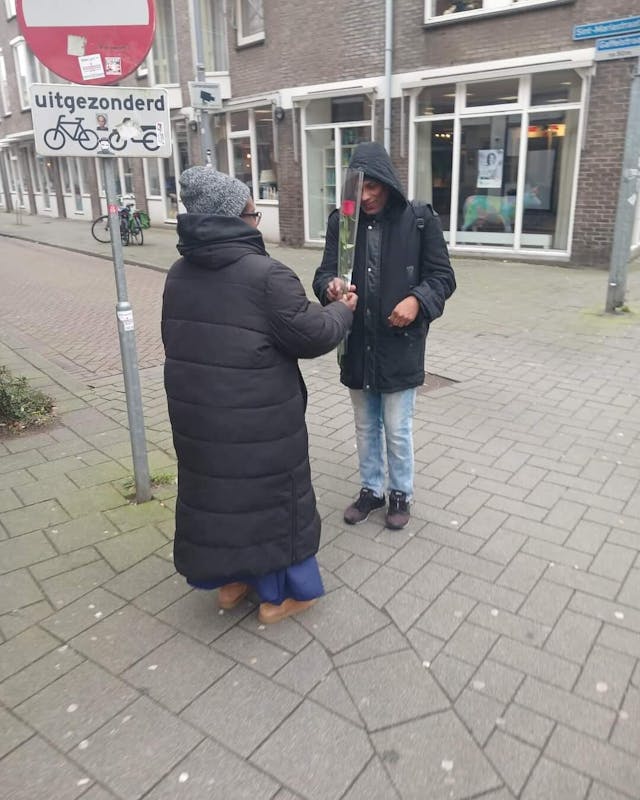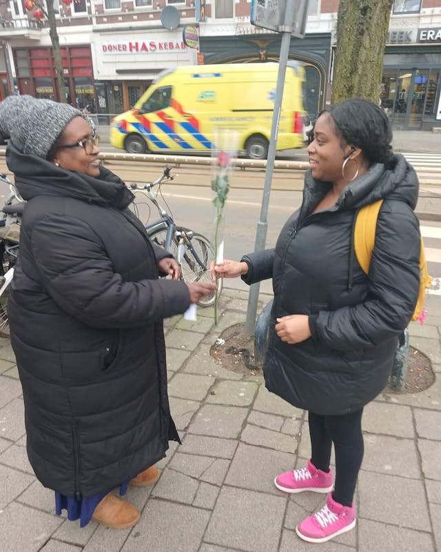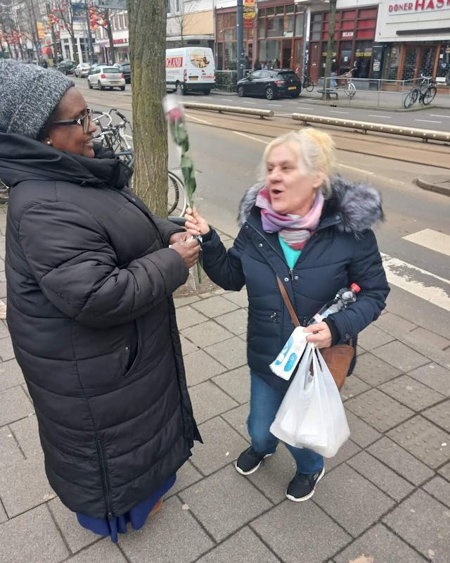 De Krachtvrouwen Oude Westen heeft meer de 50 mensen verblijdt met een prachtige roos en een persoonlijke boodschap.