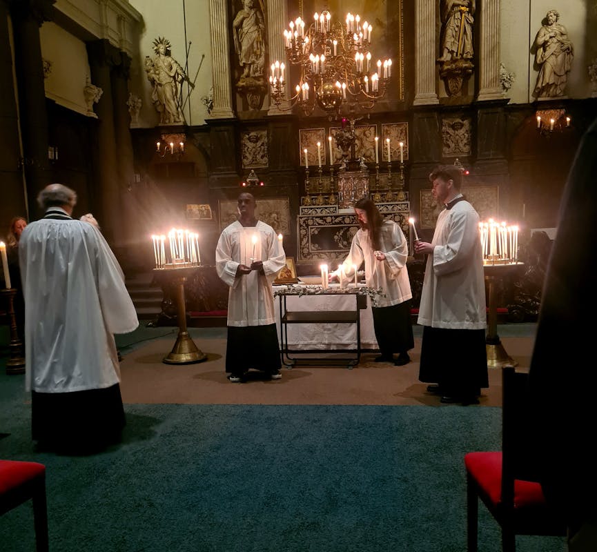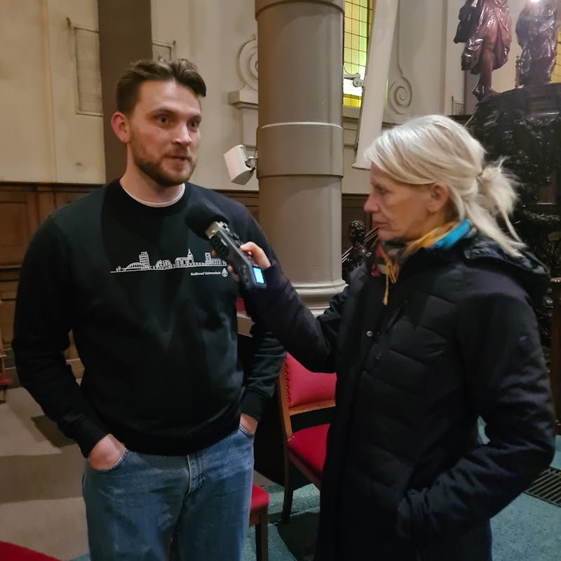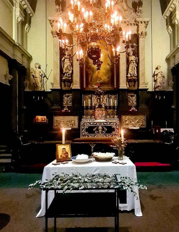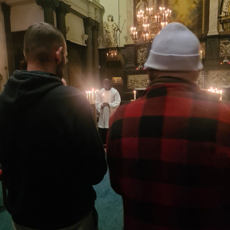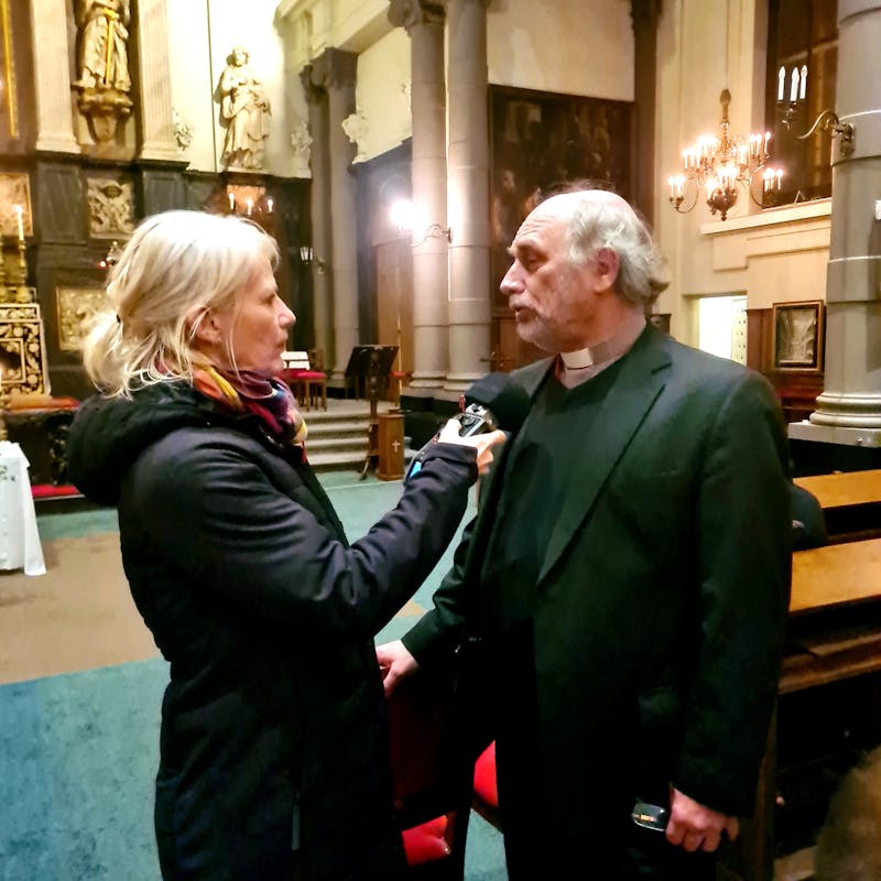 Babs Assink en Mieke van der Linden van de podcastserie Radio Rimboe gingen samen met Esdra Baris en zijn vader naar de Paradijskerk voor Allerzielen om naar het prachtige gezang te luisteren en een kaarsje te branden.