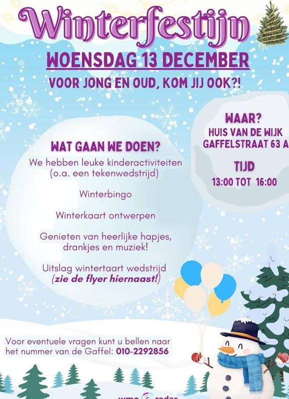 Het Gerrit Sterkmanplein wordt omgetoverd in een waar winterfestijn voor jong en oud. Doe je muts op, je sjaal om en neem je vrolijke gezicht mee. We gaan er samen een mooi feest van maken. Neem gerust iemand mee.